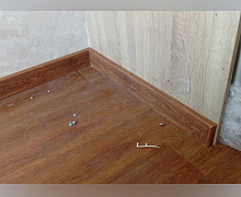 Способ монтажа: данный плинтус из вспененного ПВХ монтируется на монтажные клипсы. Клипсы устанавливаются к стене на саморезы, далее плинтус просто защелкивается на клипсы. Для одного изделия понадобится примерно 5-6 клипс. Углы и торцы оформляются запилом под 45° при помощи ножовки и стусла. Такой способ делает стыковку плинтуса практически незаметной, а композицию полностью монолитной. Подробнее о том, как правильно запилить плинтус читайте в этой статье.