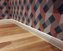 Немецкий плинтус Дёллькен из ХДФ на древесноволокнистой основе перекроет зазор между стеной и полом до 19мм.