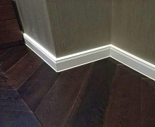 Немецкий плинтус Дёллькен из ХДФ на древесноволокнистой основе перекроет зазор между стеной и полом до 18мм.