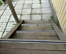 Способ монтажа: алюминиевый порожек без вставки крепится в проем между двумя напольными покрытиями или на ступени при помощи саморезов (идут в комплекте). Затем прорезиненную ПВХ вставку нужно нагреть строительным или обычным феном, либо подержать в горячей воде, чтобы материал стал мягче и легче вошел в паз профиля.