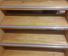 Способ монтажа: алюминиевый порожек без вставки крепится на ступени при помощи саморезов (идут в комплекте). Затем прорезиненную ПВХ вставку нужно нагреть строительным или обычным феном, либо подержать в горячей воде, чтобы материал стал мягче и легче вошел в паз профиля.